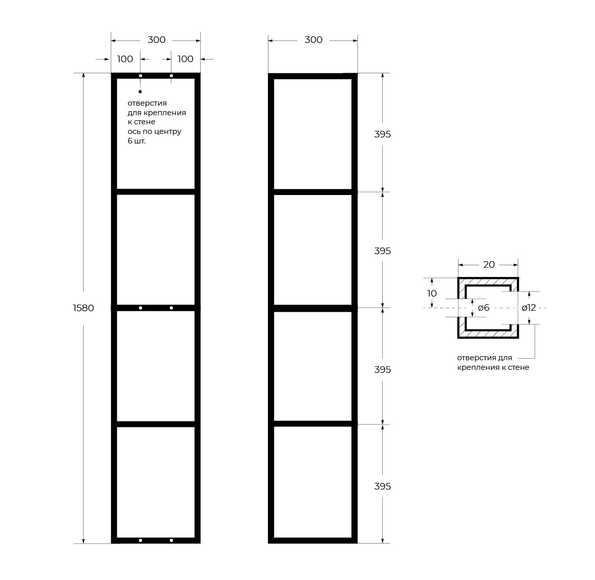 Металлическая четырёхъярусная сварная подвесная полка Cezares Cadro 30х30х158 (CADRO-30/30/160-4C-SO-MET-ST)