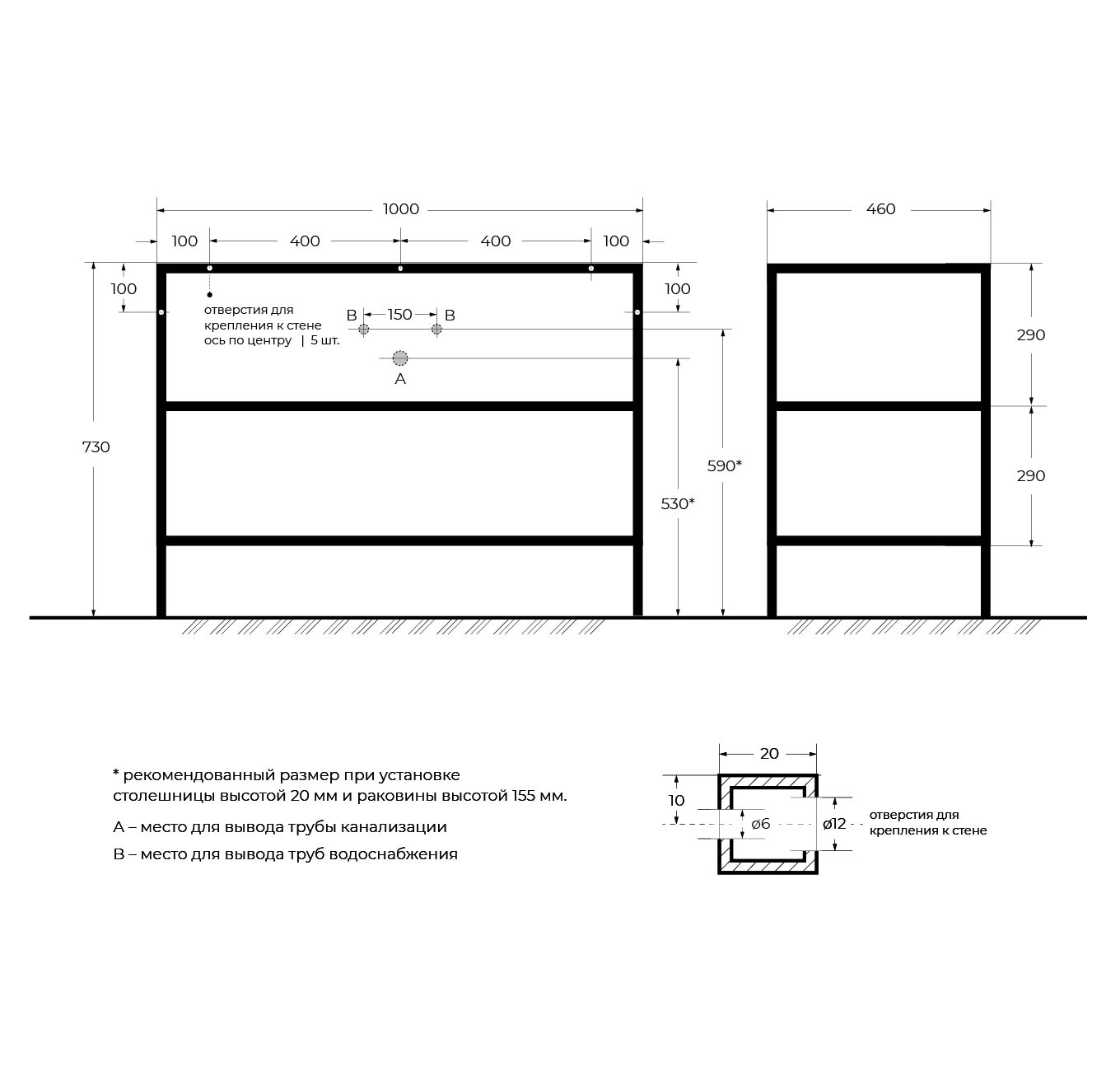 Металлический двухъярусный сварной каркас под раковину Cezares Cadro 100х46х73 (CADRO-100/46/73-2C-PIA-MET-ST)