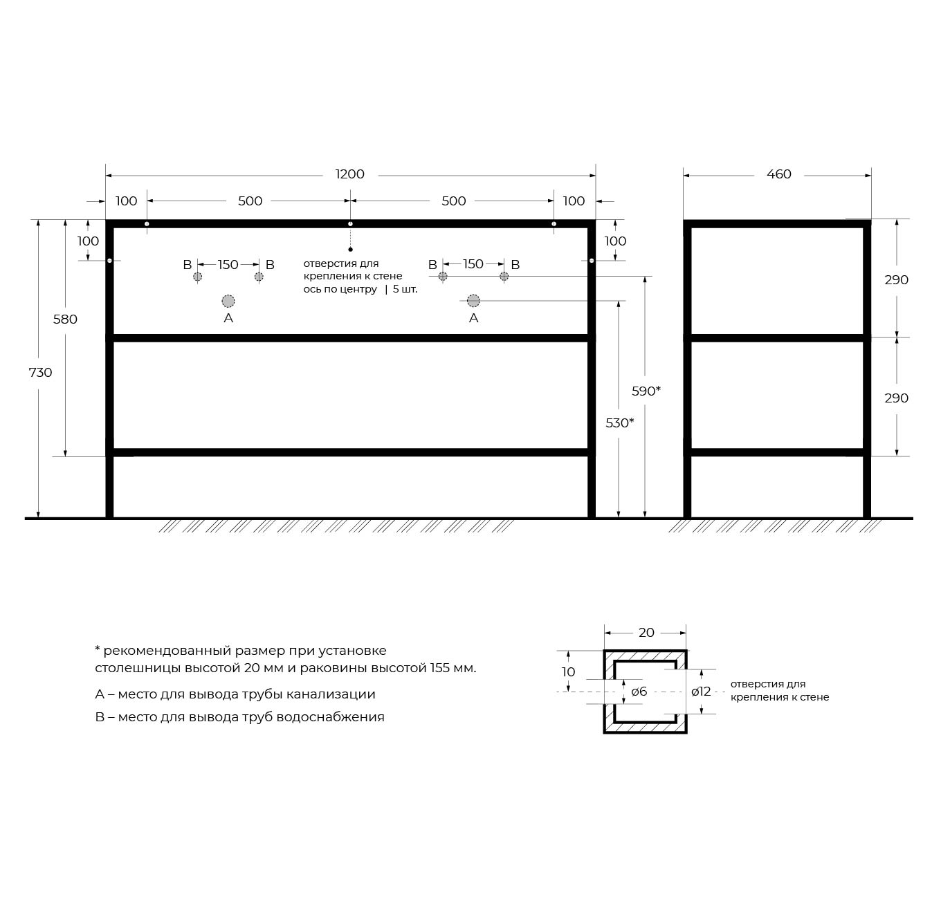 Металлический двухъярусный сварной каркас под раковину Cezares Cadro 120х46х73 (CADRO-120/46/73-2C-PIA-MET-ST)