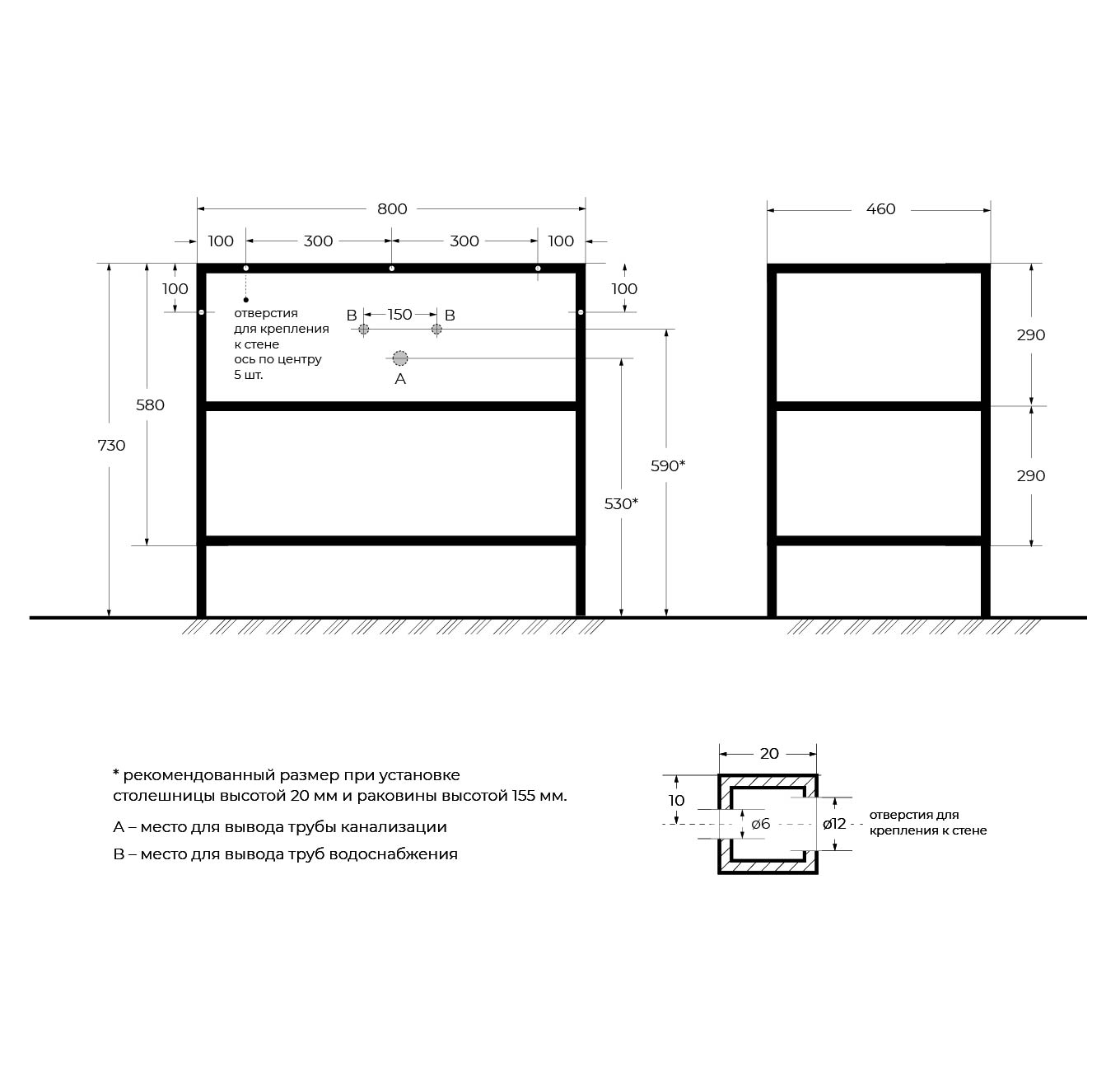 Металлический двухъярусный сварной каркас под раковину Cezares Cadro 80х46х73 (CADRO-80/46/73-2C-PIA-MET-ST)