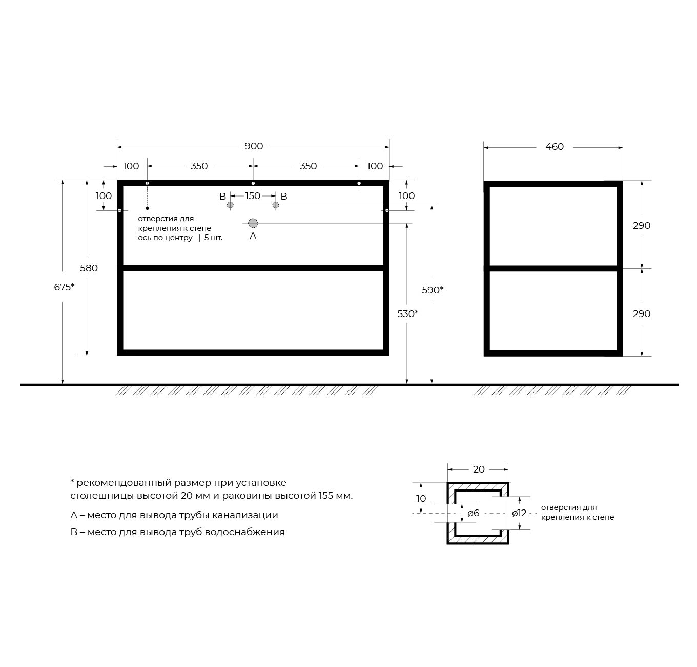 Металлический двухъярусный сварной каркас под раковину Cezares Cadro 90х46х58 (CADRO-90/46/58-2C-SO-MET-ST)