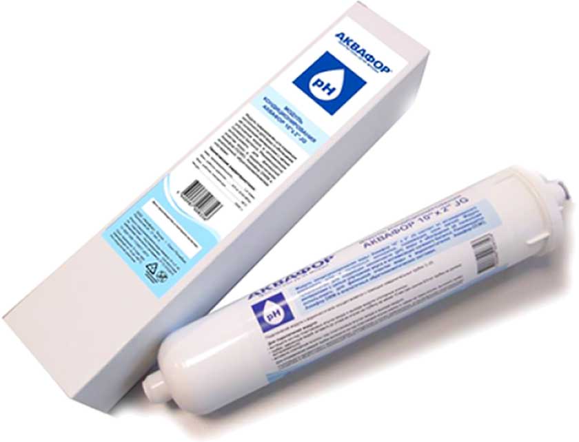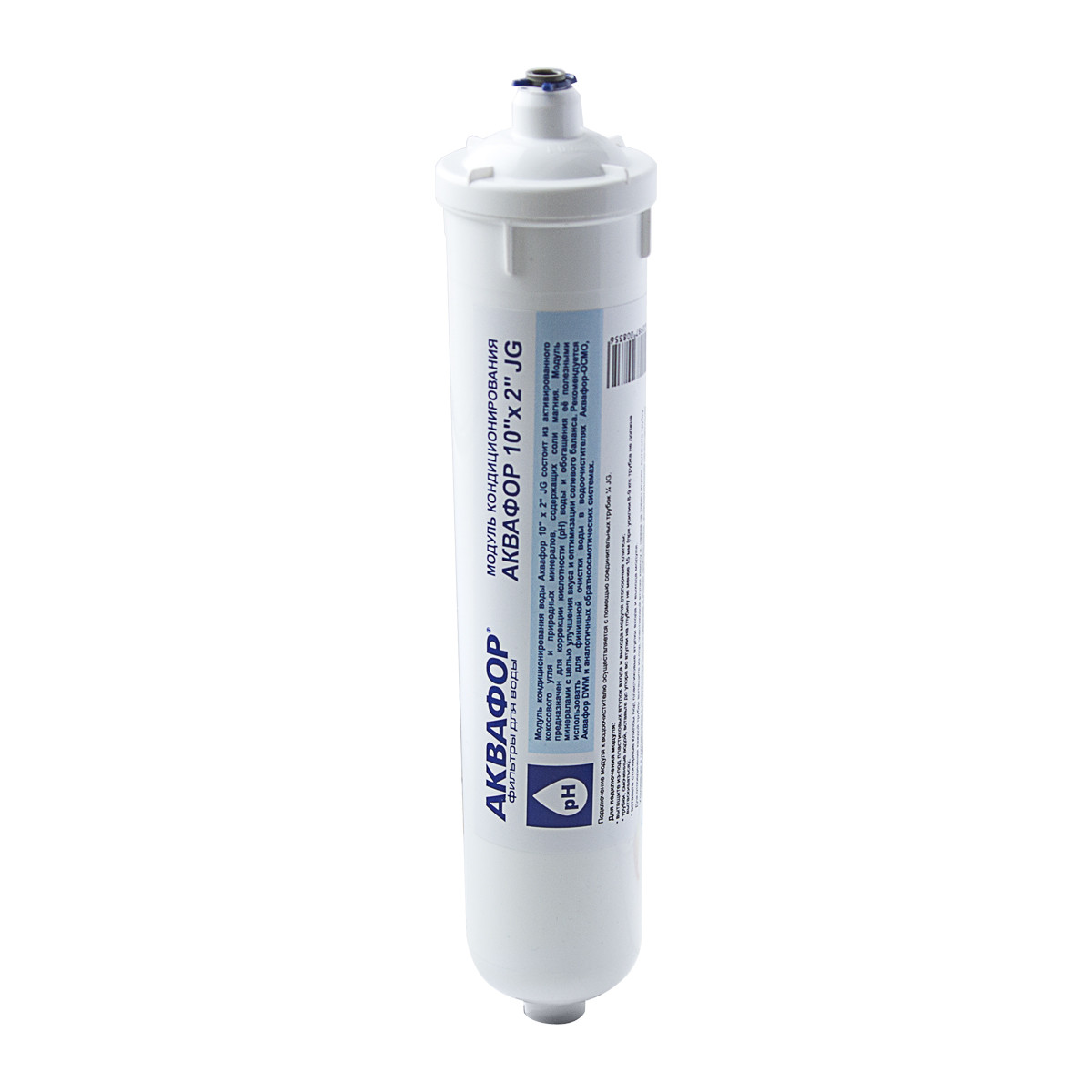 Модуль кондиционирования воды Аквафор 10"" x 2"" John Guest состоит из активированного кокосового угля и природных минералов, содержащих соли магния. Предназначен для коррекции кислотности (рН) воды и обогащения её полезными минералами с целью улучшения вкуса и оптимизации солевого баланса. Рекомендуется использовать для финишной очистки воды в системах Аквафор-ОСМО, Аквафор DWM и других обратноосмотических системах.