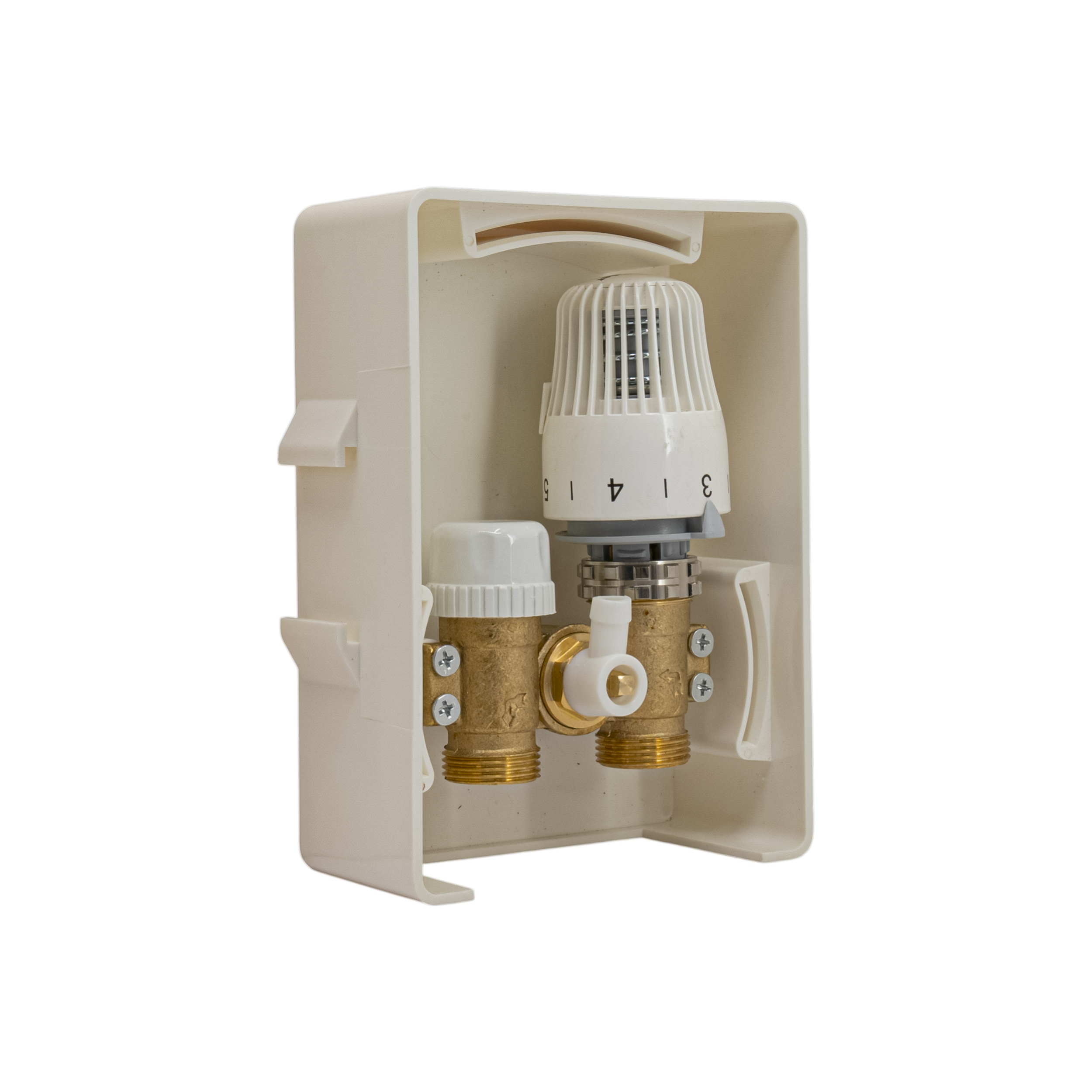 Регулировочные короба Okseler с внутренним термостатическим клапаном предназначены для подключения и регулирования контуров тёплого пола в системах высокотемпературного (радиаторного) отопления. Эти короба обеспечивают точный контроль температуры обратного потока теплоносителя, что позволяет эффективно управлять тепловыми режимами без использования сложных насосно-смесительных узлов.