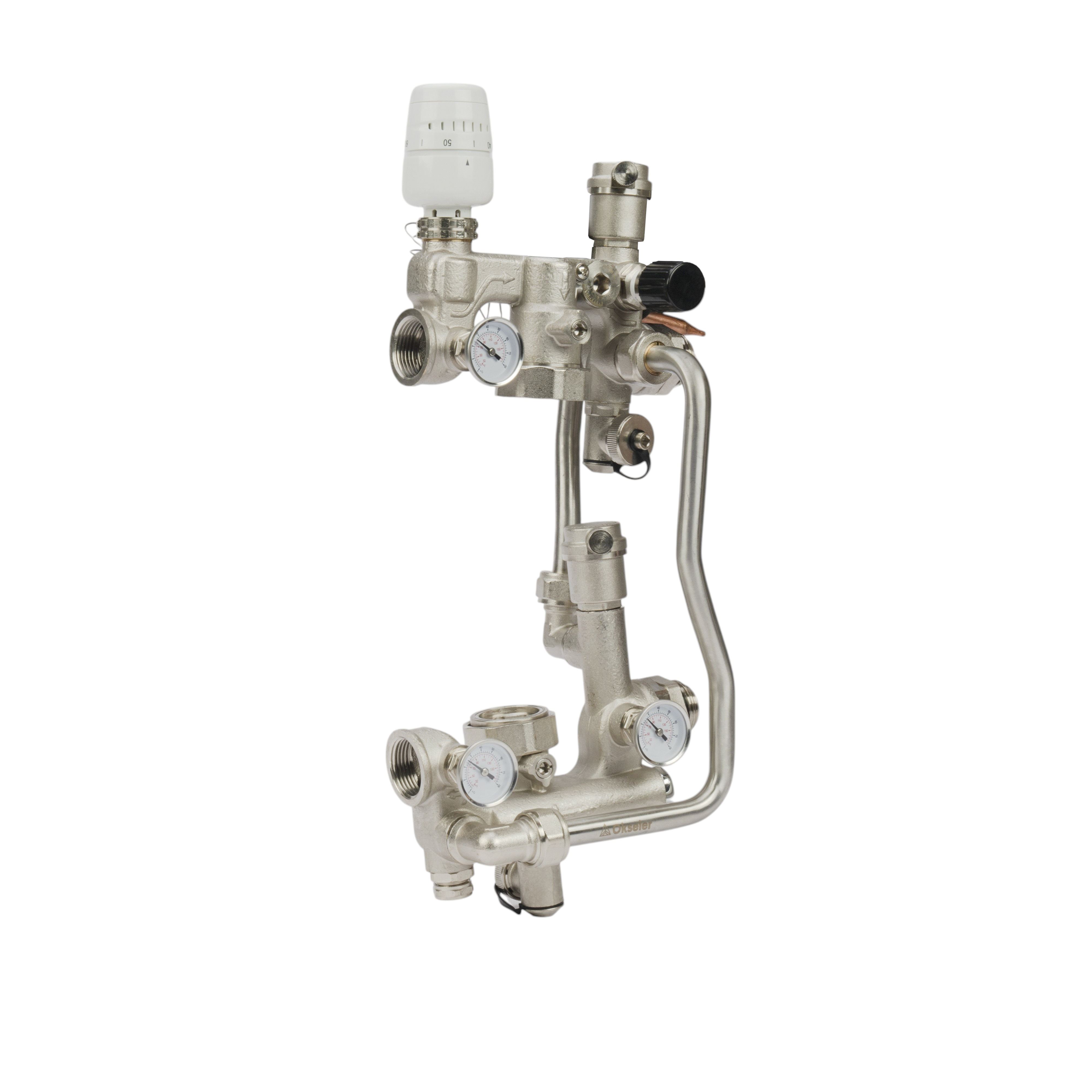 Насосно-смесительный блок Okseler с термостатом 20-60°C, байпасом и перепускным клапаном — готовое решение для управления температурой теплоносителя