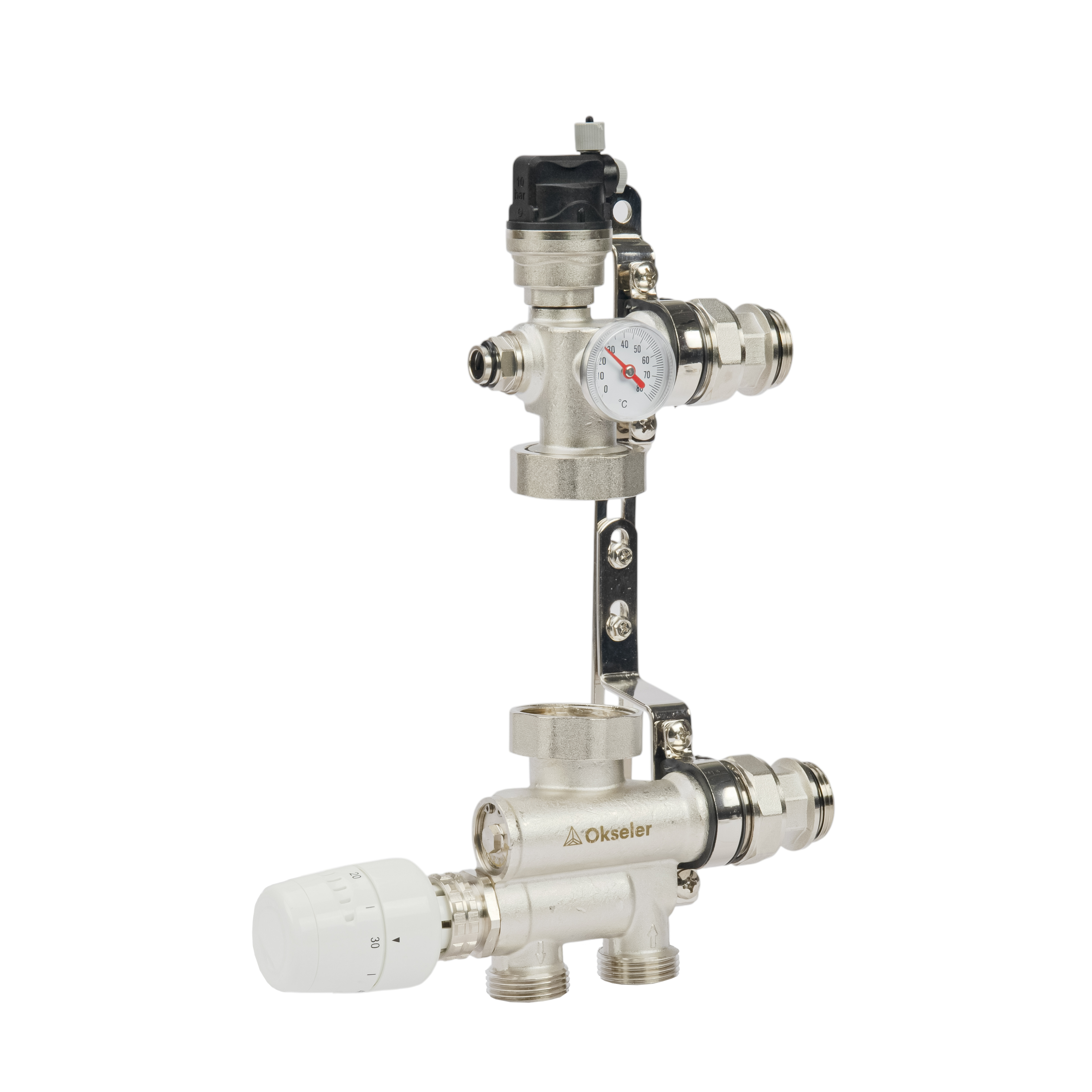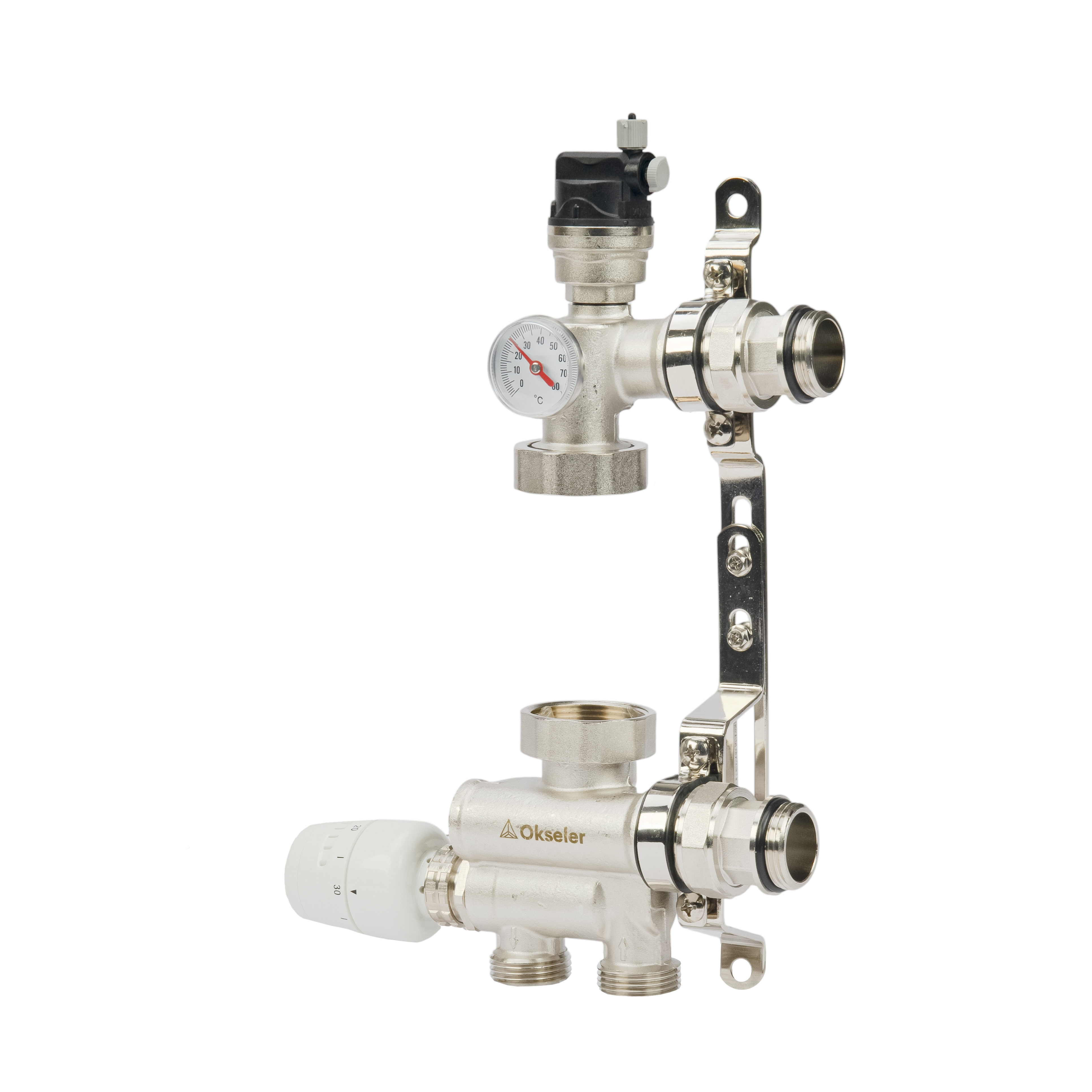 Модуль подмешивающий Okseler с термостатом 20-60°С и выносным датчиком, без насоса 130-180 мм (Oks01488)