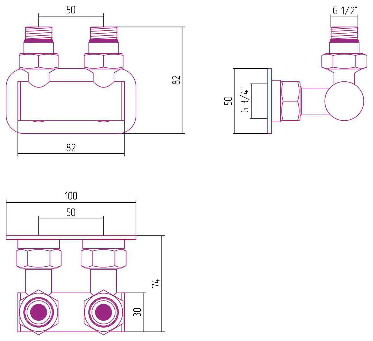 Модуль Сунержа 2"х1/2"" угловой EU50 (12-1536-1234)