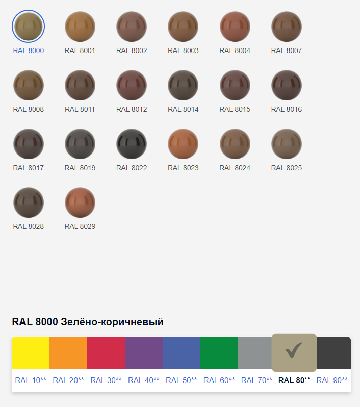 Палитра RAL Classic - порошковый метод окраски изделий в любой цвет из коллекции RAL Classic, насчитывающей 213 оттенков, в том числе 2 металлика, 15 перламутровых и 6 флуоресцентных.