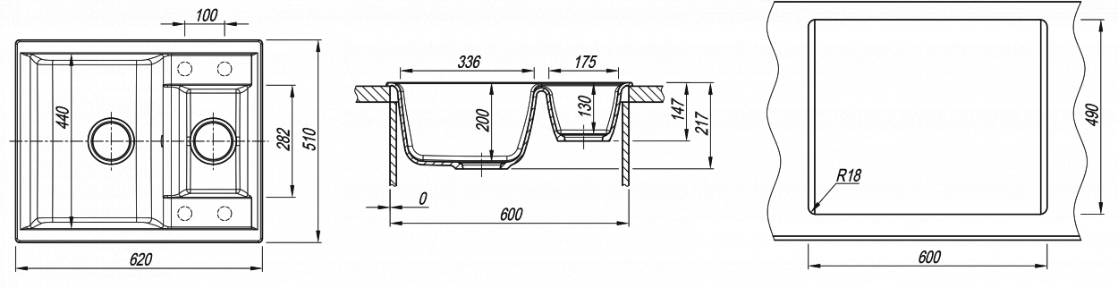 Компактная мойка с дополнительной малой чашей