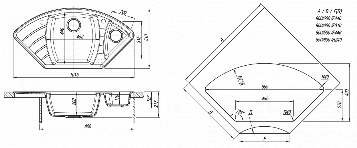 Состав поставки: мойка, отводная арматура с выпуском 3 1/2 (D=90 мм) и переливом.