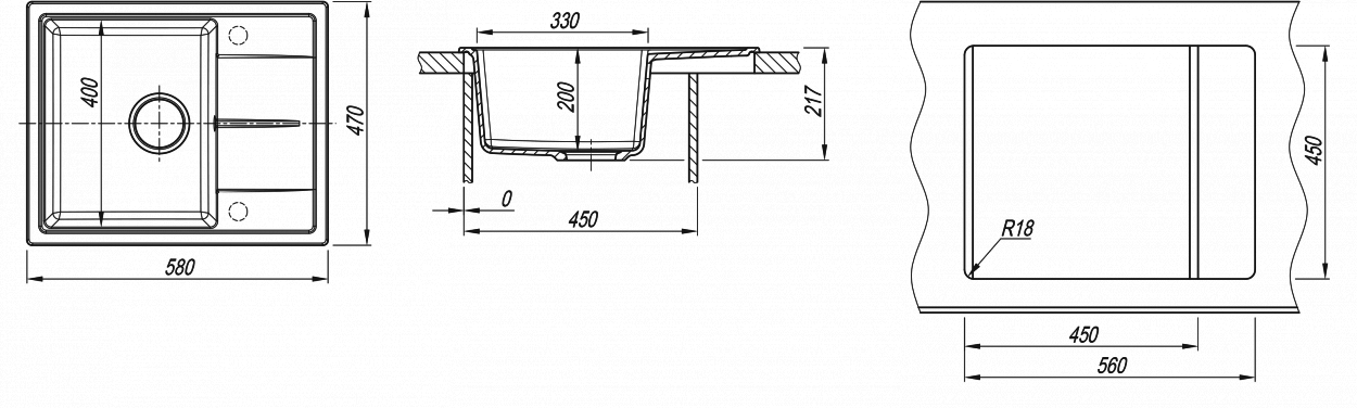 Отверстия под смеситель - без отверстия под смеситель, имеет 1 намеченное отверстие под смеситель.