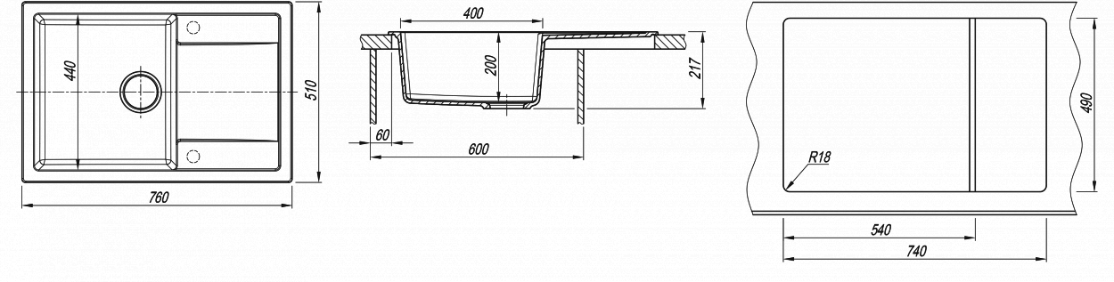 Отверстия под смеситель - без отверстия под смеситель, имеет 1 намеченное отверстие под смеситель.