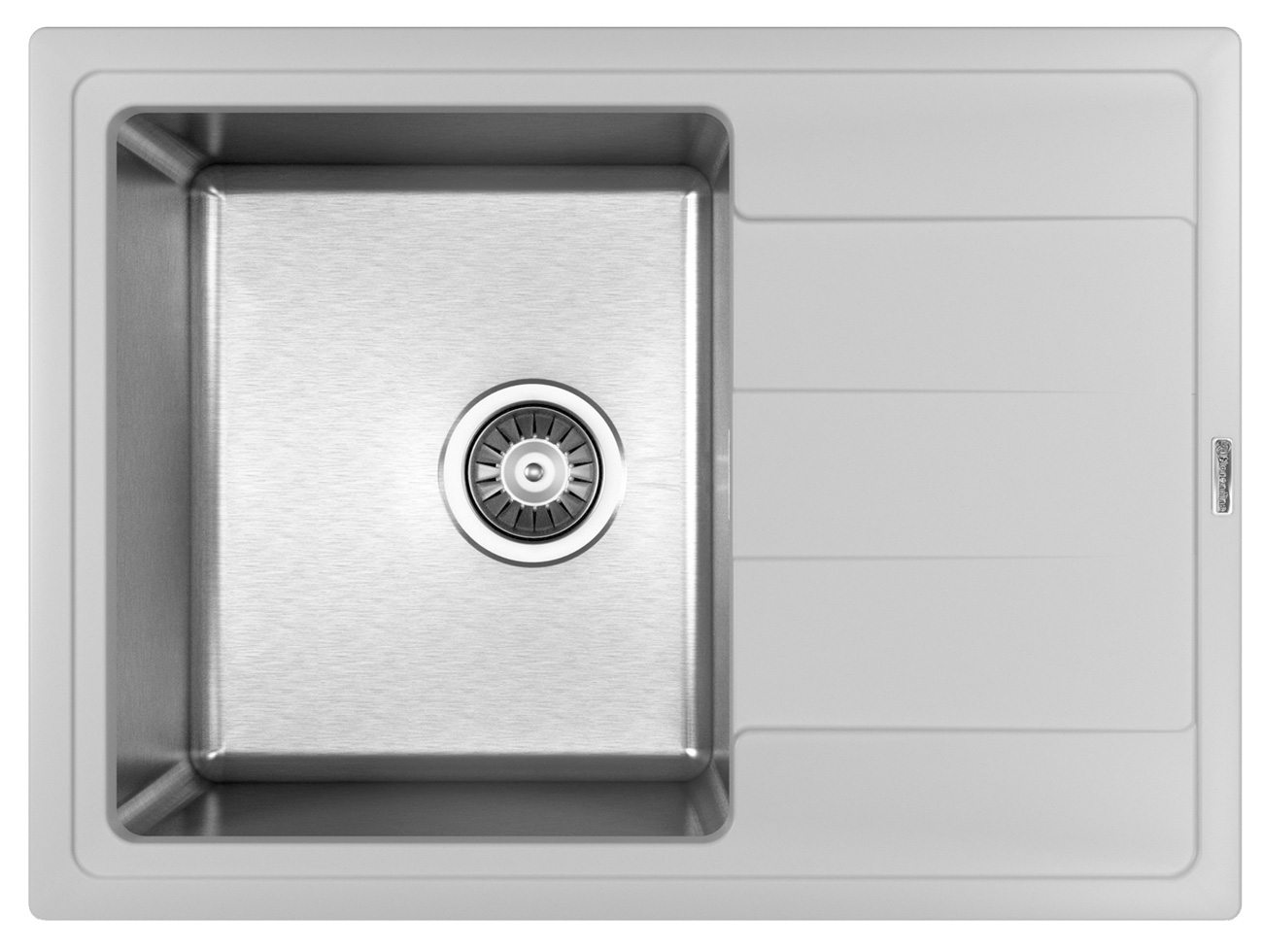Материал столешницы мои?ки - кварцевыи? композит. Материал чаши мои?ки - нержавеющая сталь марки AISI 304, толщина 1 мм. Мойка оборачиваемая