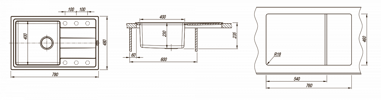 Материал столешницы мои?ки - кварцевыи? композит. Материал чаши мои?ки - нержавеющая сталь марки AISI 304, толщина 1 мм.