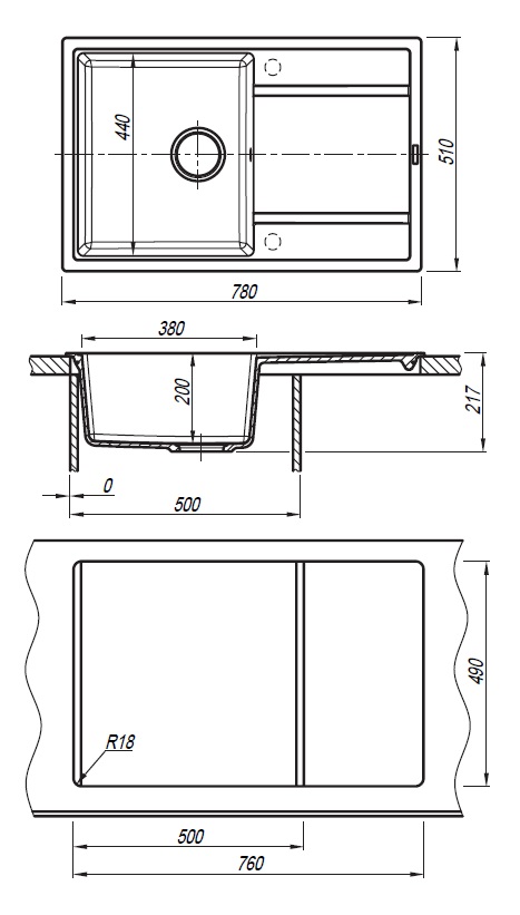 Мойка для кухни Florentina Липси 780 78х51 (Fs, Антрацит)