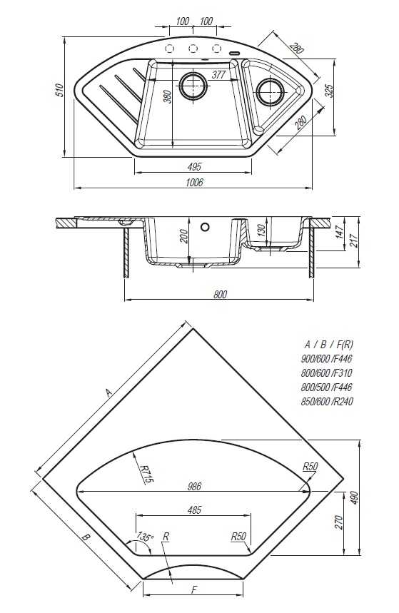 Комплектация: Отводная арматура для двух разноуровневых чаш с выпусками 3 1/2" (D=90 мм) и переливом.