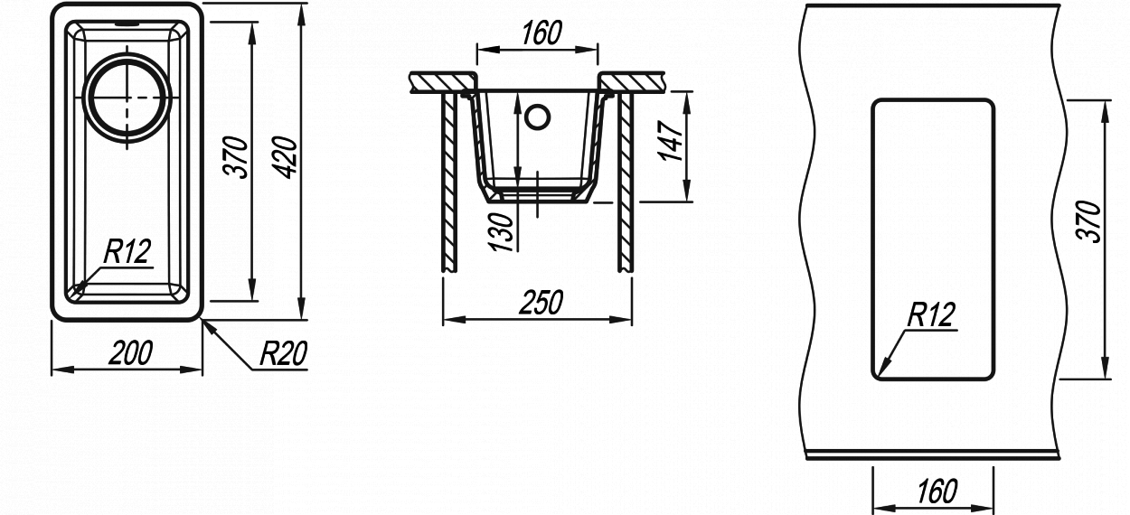 Мойка для кухни Florentina Вега 160 42х20 Fs, Грей (22.300.00160.305)