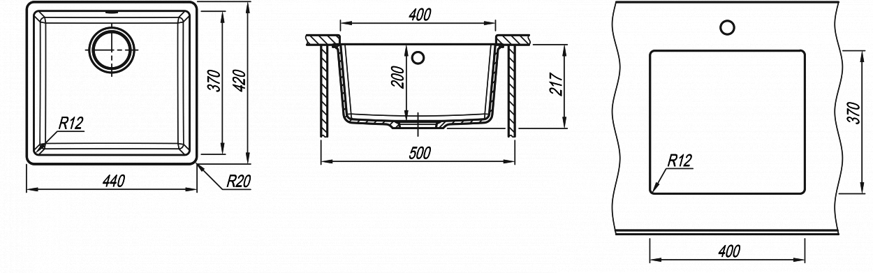 Эргономичная мойка в блок 50 см.