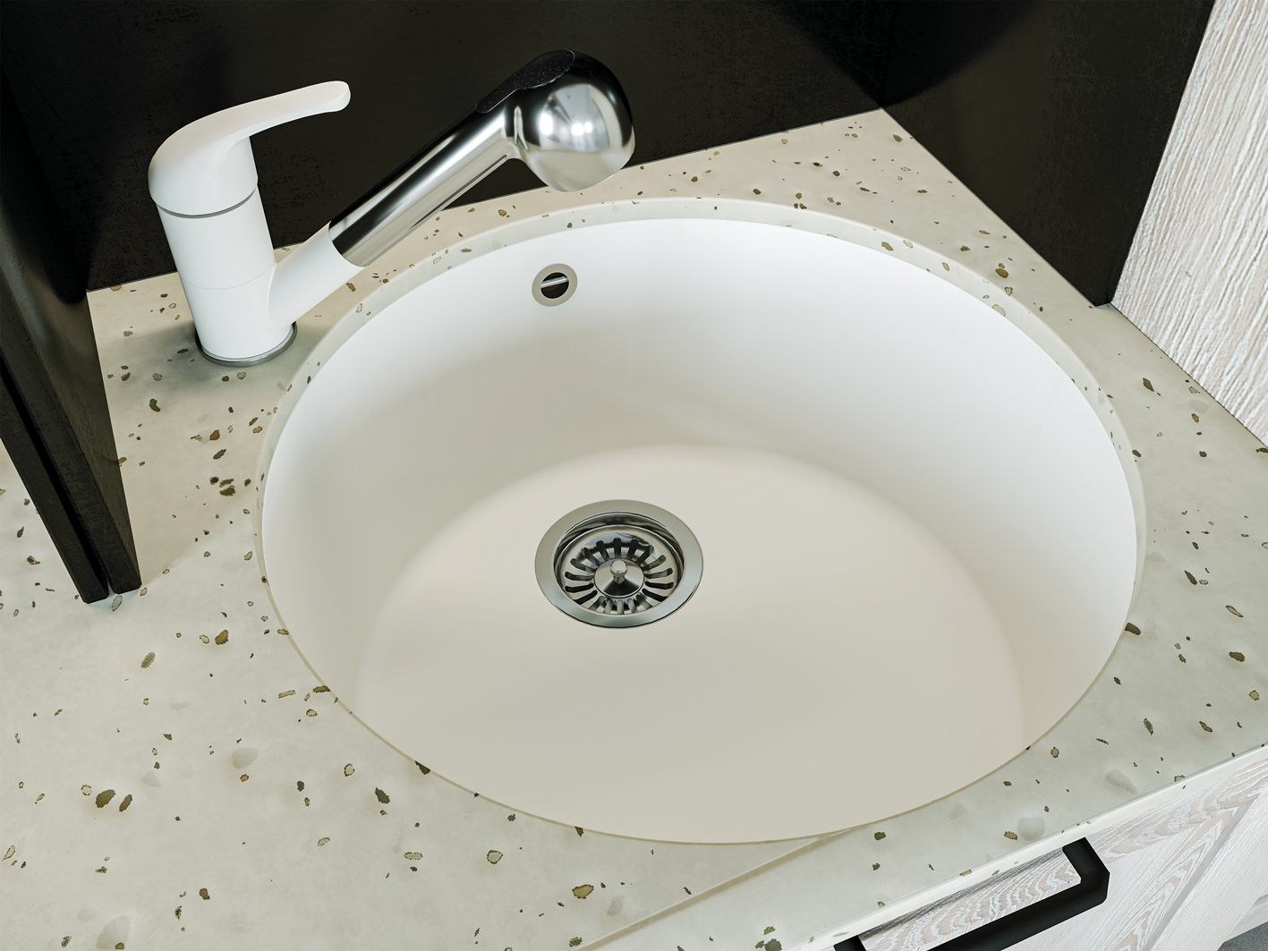 Мойка для монтажа под столешницу с круглой чашей в блок 60 см.