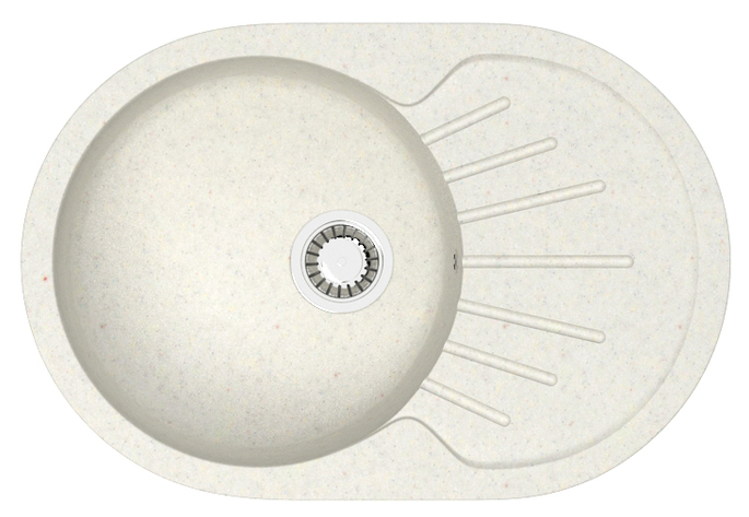 Кухонная мойка изготовлена из современных экологически чистых материалов, природного молотого кварца, мрамора или гранита с добавлением специальных пигментов и красителей.