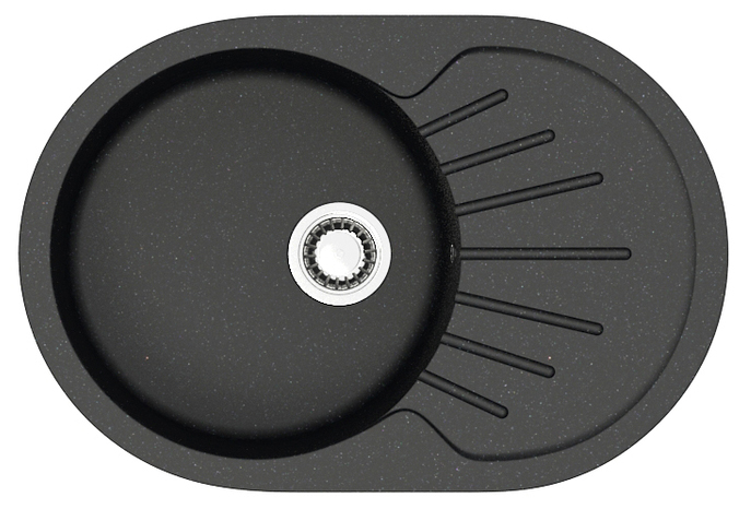 Кухонная мойка изготовлена из современных экологически чистых материалов, природного молотого кварца, мрамора или гранита с добавлением специальных пигментов и красителей.