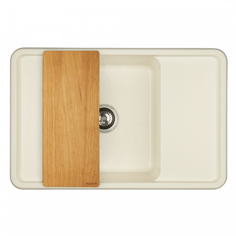 Новая серия кухонных моек из литого мрамора AQUATON БЕЛЛИС: урбанистический характер и максимальная функциональность. Современная кухня должна отвечать самым высоким требованиям: быть практичной, долговечной, безопасной и максимально функциональной, чтобы каждый день в заботе о близких вы ощущали преимущества инновационных технологий. AQUATON представляет новую коллекцию кухонных моек БЕЛЛИС из литого мрамора с ультрамодным урбанистическим дизайном, который идеально дополнит вашу кухню. Уникальный дизайн, навеянный новыми трендами Запада, делает новую серию кухонных моек Беллис не только безупречно красивой, но и очень функциональной. Увеличенная глубина чаши, утопленное ниже уровня рабочей поверхности крыло и защищающий от разлива воды бортик идеально интегрируют мойку в столешницу, создавая ощущение единого целого. Серия представлена в четырёх популярных размерах - 57, 78, 87 и 97 см. На выбор 9 цветовых решений, которые подчеркнут ваш индивидуальный стиль и преобразят интерьер: графит, песочный, серый, жемчуг, серый шёлк, латте, терракот, кофе и шампань. Модели разработаны с увеличенной глубиной чаши и дополнены новым аксессуаром - разделочной доской из дуба, которая сделает мойку еще более функциональной и позволит увеличить размер рабочей поверхности, обеспечивая устойчивую износостойкую основу для резки. Практичный и простой в уходе дуб — натуральный материал, который сделает вашу кухню ярче и уютнее! Благодаря идеально гладкой поверхности и отсутствию микропор кухонные мойки AQUATON БЕЛЛИС невероятно приятны на ощупь и имеют высокие антибактериальные свойства, за ними легко ухаживать. Изделия серии обладают длительным сроком службы: гарантия на мойки составляет 5 лет, а срок эксплуатации не менее 10 лет!