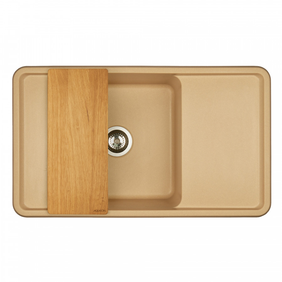 Новая серия кухонных моек из литого мрамора AQUATON БЕЛЛИС: урбанистический характер и максимальная функциональность. Современная кухня должна отвечать самым высоким требованиям: быть практичной, долговечной, безопасной и максимально функциональной, чтобы каждый день в заботе о близких вы ощущали преимущества инновационных технологий. AQUATON представляет новую коллекцию кухонных моек БЕЛЛИС из литого мрамора с ультрамодным урбанистическим дизайном, который идеально дополнит вашу кухню. Уникальный дизайн, навеянный новыми трендами Запада, делает новую серию кухонных моек Беллис не только безупречно красивой, но и очень функциональной. Увеличенная глубина чаши, утопленное ниже уровня рабочей поверхности крыло и защищающий от разлива воды бортик идеально интегрируют мойку в столешницу, создавая ощущение единого целого. Серия представлена в четырёх популярных размерах - 57, 78, 87 и 97 см. На выбор 9 цветовых решений, которые подчеркнут ваш индивидуальный стиль и преобразят интерьер: графит, песочный, серый, жемчуг, серый шёлк, латте, терракот, кофе и шампань. Модели разработаны с увеличенной глубиной чаши и дополнены новым аксессуаром - разделочной доской из дуба, которая сделает мойку еще более функциональной и позволит увеличить размер рабочей поверхности, обеспечивая устойчивую износостойкую основу для резки. Практичный и простой в уходе дуб — натуральный материал, который сделает вашу кухню ярче и уютнее! Благодаря идеально гладкой поверхности и отсутствию микропор кухонные мойки AQUATON БЕЛЛИС невероятно приятны на ощупь и имеют высокие антибактериальные свойства, за ними легко ухаживать. Изделия серии обладают длительным сроком службы: гарантия на мойки составляет 5 лет, а срок эксплуатации не менее 10 лет!