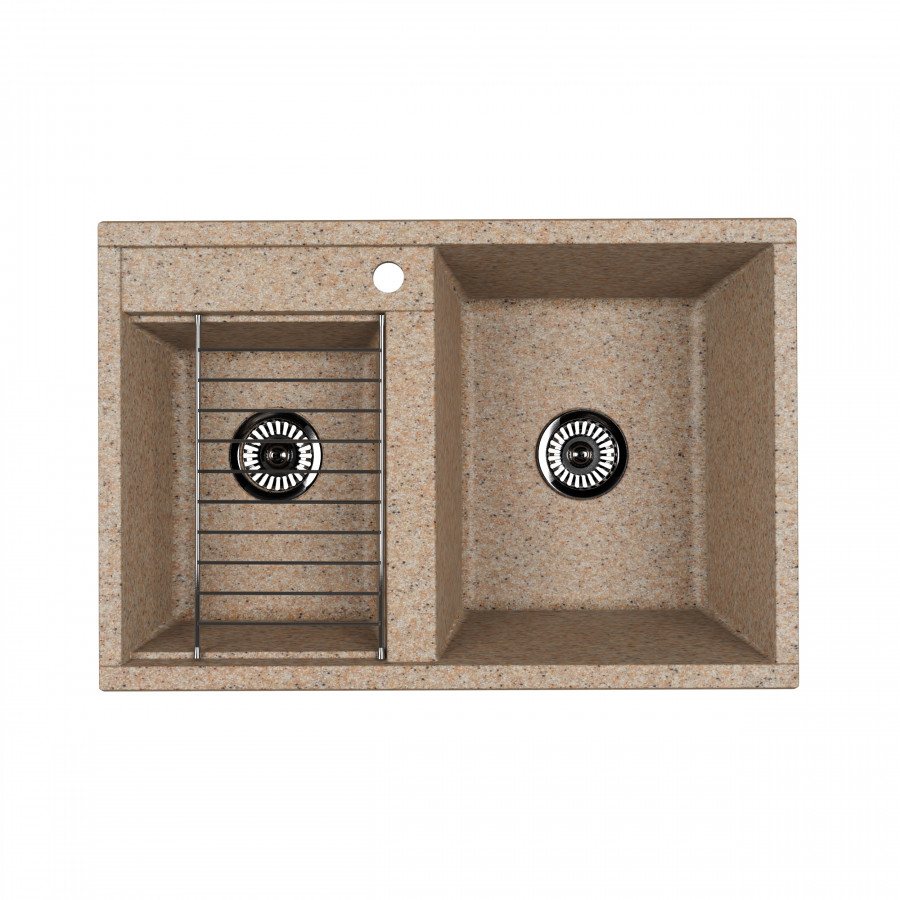 Кухонная мойка из литого мрамора в современном минималистичном дизайне с двумя чашами и дополнительным аксессуаром - решеткой из нержавеющей стали. Покрытие Gelcoat обеспечивает высокую устойчивость к механическим воздействиям, которым подвергается поверхность мойки в процессе эксплуатации. Является стойким к большинству агрессивных и красящих веществ. Мойка обладает высокими бактерицидными свойствами и является экологически чистым изделием. Устойчива к резким перепадам температур.