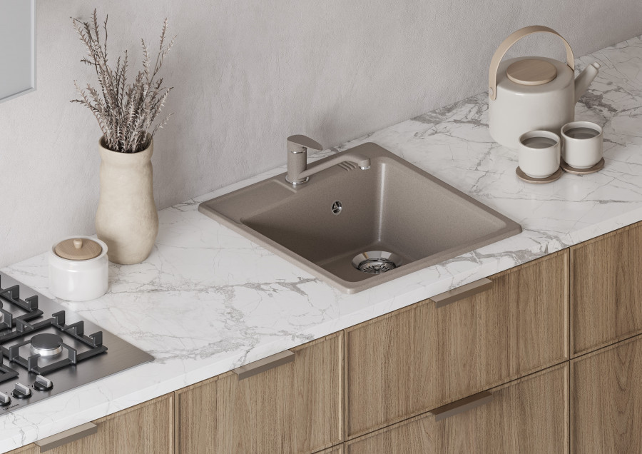 Классическая кухонная мойка из литого мрамора, Покрытие Gelcoat обеспечивает высокую устойчивость к механическим воздействиям, которым подвергается поверхность мойки в процессе эксплуатации. Является стойким к большинству агрессивных и красящих веществ. Мойка обладает высокими бактерицидными свойствами и является экологически чистым изделием. Устойчива к резким перепадам температур.