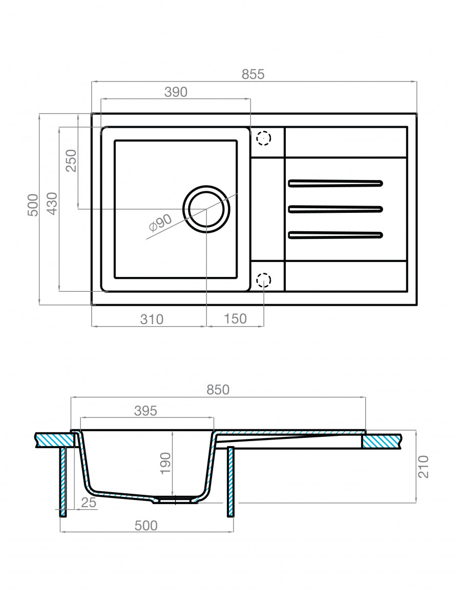 Кухонная мойка в современном дизайне из литого мрамора с одной чашей и крылом. Покрытие Gelcoat обеспечивает высокую устойчивость к механическим воздействиям, которым подвергается поверхность мойки в процессе эксплуатации. Является стойким к большинству агрессивных и красящих веществ. Мойка обладает высокими бактерицидными свойствами и является экологически чистым изделием. Устойчива к резким перепадам температур.