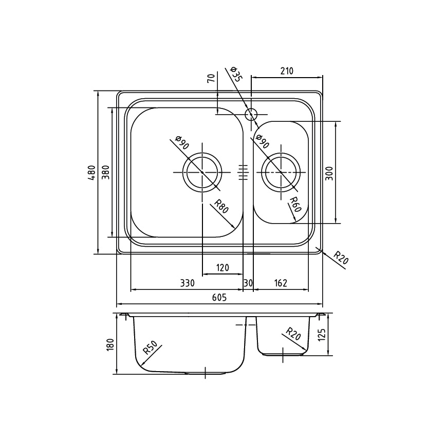 Мойка для кухни врезная Iddis Strit 605х480х180 нержавеющая сталь, полированная, 1 1/2, чаша справа (STR60PZi77)