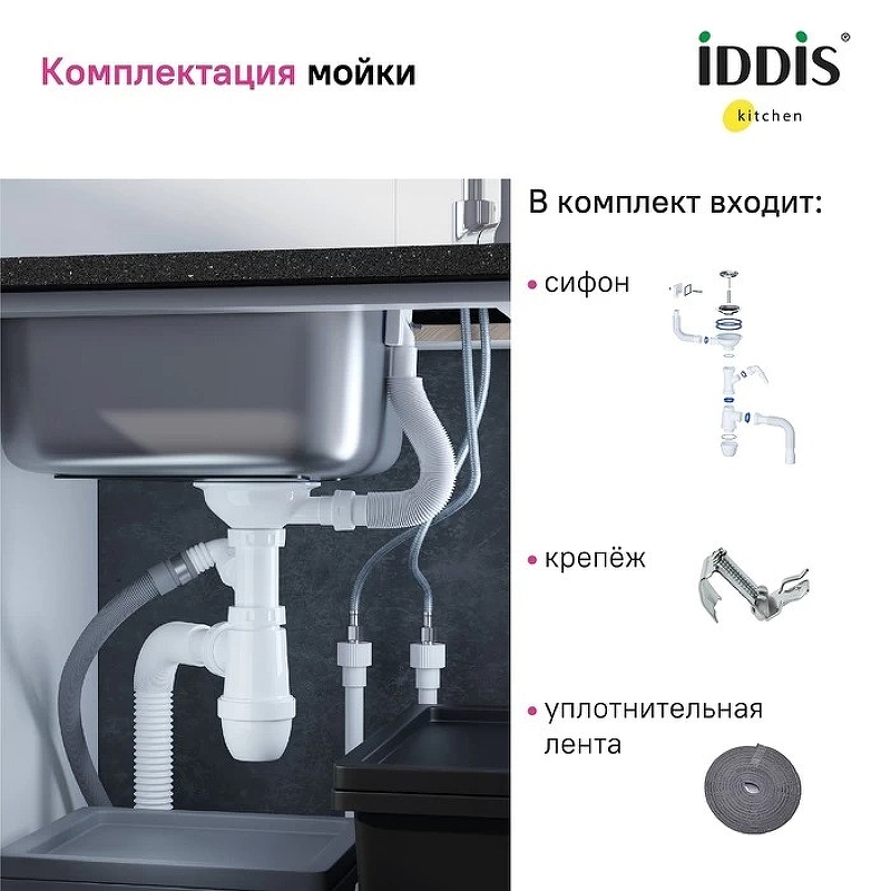 Мойка для кухни врезная Iddis Suno S 51 с сифоном нержавеющая сталь шелк (SUN51S0i77S)