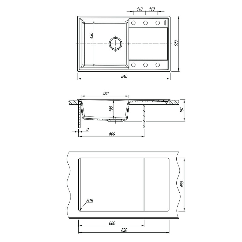 Все модели моек оснащены комплектами сливной арматуры с переливами и сифоном для подключения посудомоечной или стиральной машины, а также крепежом для монтажа к столешни