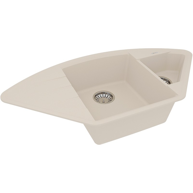 Благодаря своей форме, мойка подойдет как для кухонного гарнитура с подводкой воды в одном из углов помещения, так и для стандартного размещения в прямом шкафу. Эргономичная мойка с дополнительной чашей, которую можно использовать для мытья овощей и фруктов или для размораживания продуктов.