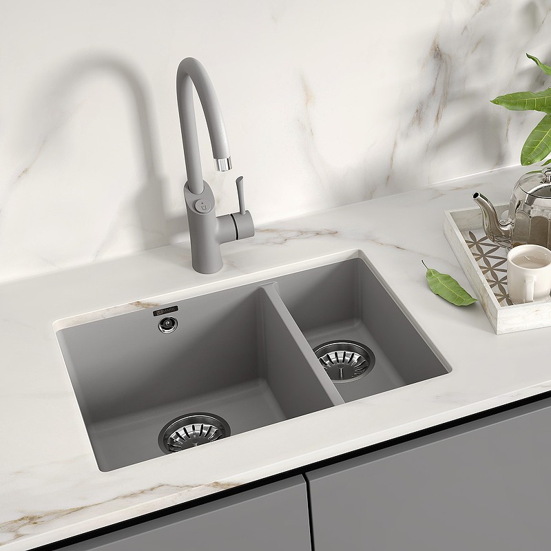 Имеет две прямоугольные чаши разных размеров, что позволяет расширить функции и оптимизировать процессы приготовления пищи и мытья посуды.
