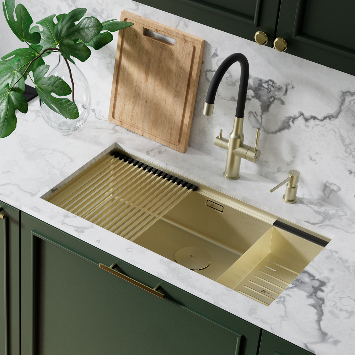 Эстетичный внешний вид. Мойки выполнены в 4-х современных цветах: сталь, светлое золото, графит и черный матовый, что позволяет выбрать мойку, соответствующую стилю кухни.