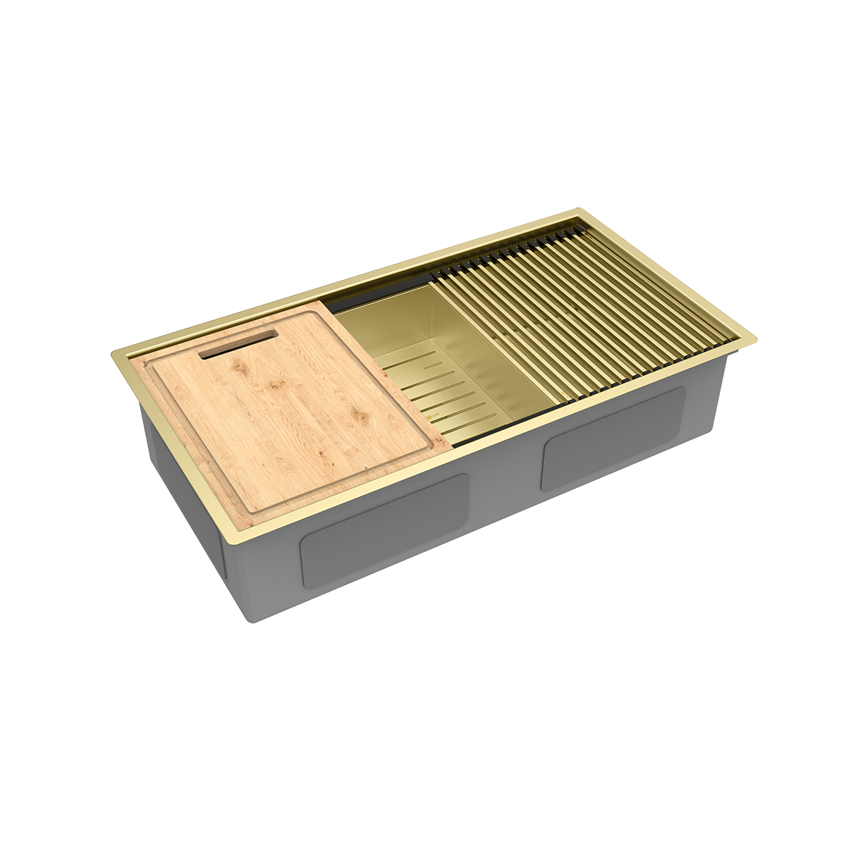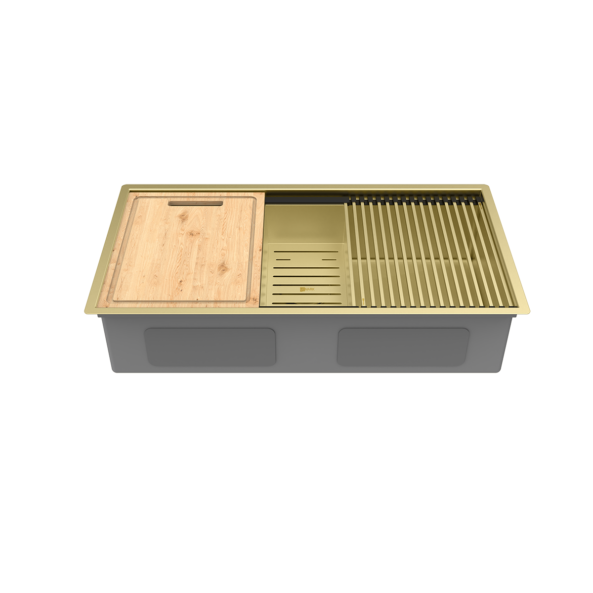Устойчивость к коррозии. Нержавеющая сталь SUS 304 характеризуется наличием 18% хрома и 10% никеля, что гарантирует ей высочайшую устойчивость к коррозии. PVD-покрытие защищает мойку от воздействия влаги и агрессивных веществ, что особенно важно для кухонной мойки.