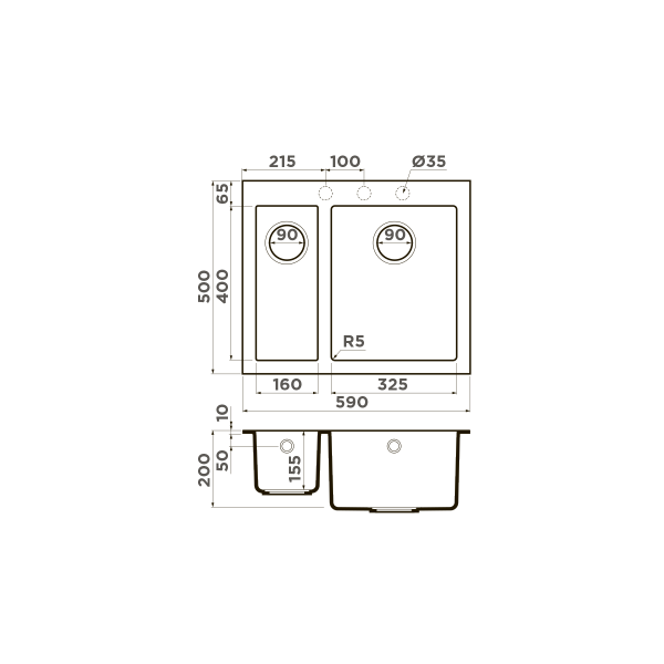 Мойка для кухни врезная Omoikiri Bosen 59-2-BL 590х500 черный (4993149)