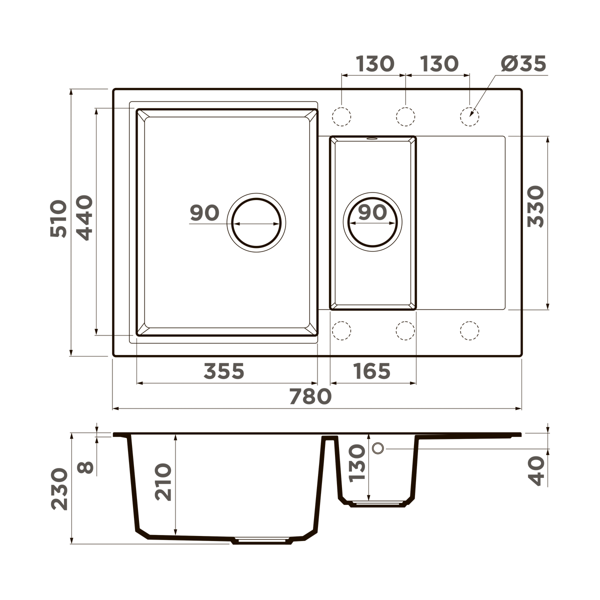 Материал выдерживает высокие температуры до 280°С (но не стоит ставить на поверхность мойки горячие сковородки и кастрюли, т.к их температура может достигать 500°С).