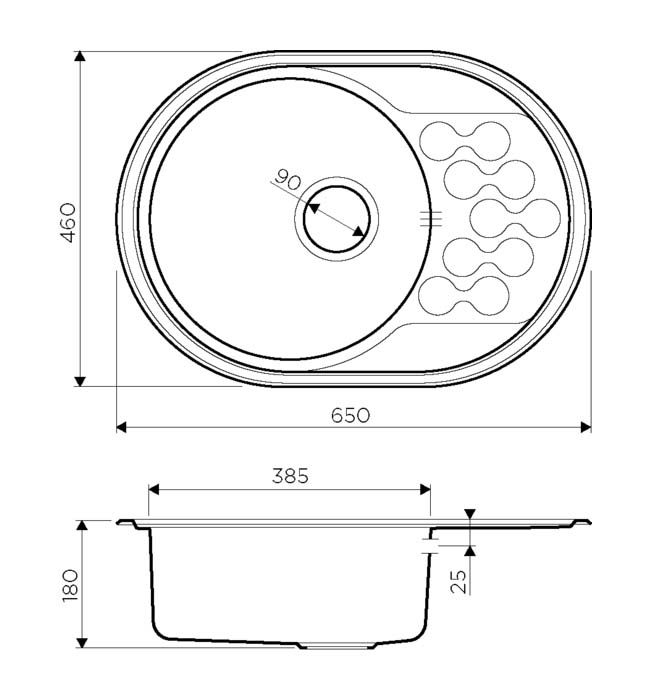 Состав поставки: мойка, донный клапан, сифон, крепления