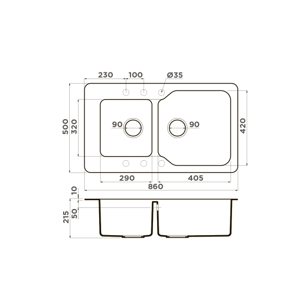 Мойка для кухни врезная Omoikiri Maru 86-2-EV 860х500 эверест (4993290)