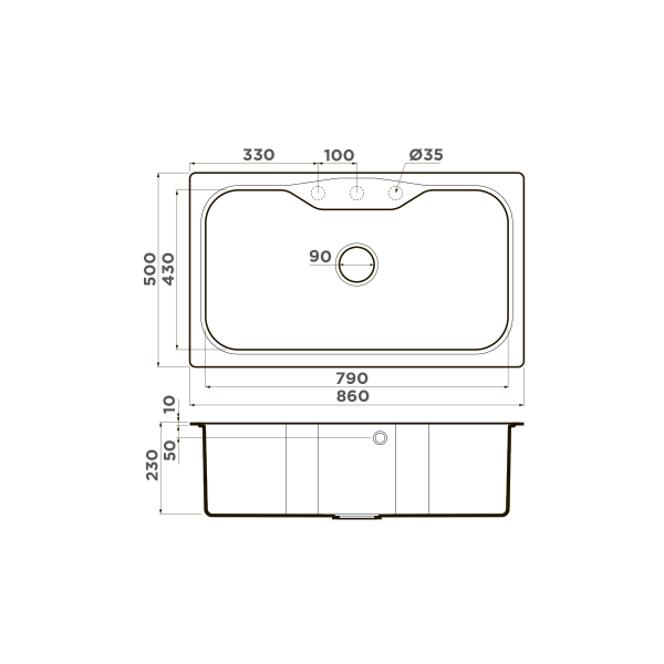 Мойка для кухни врезная Omoikiri Maru 86-BE 860х500 ваниль (4993139)