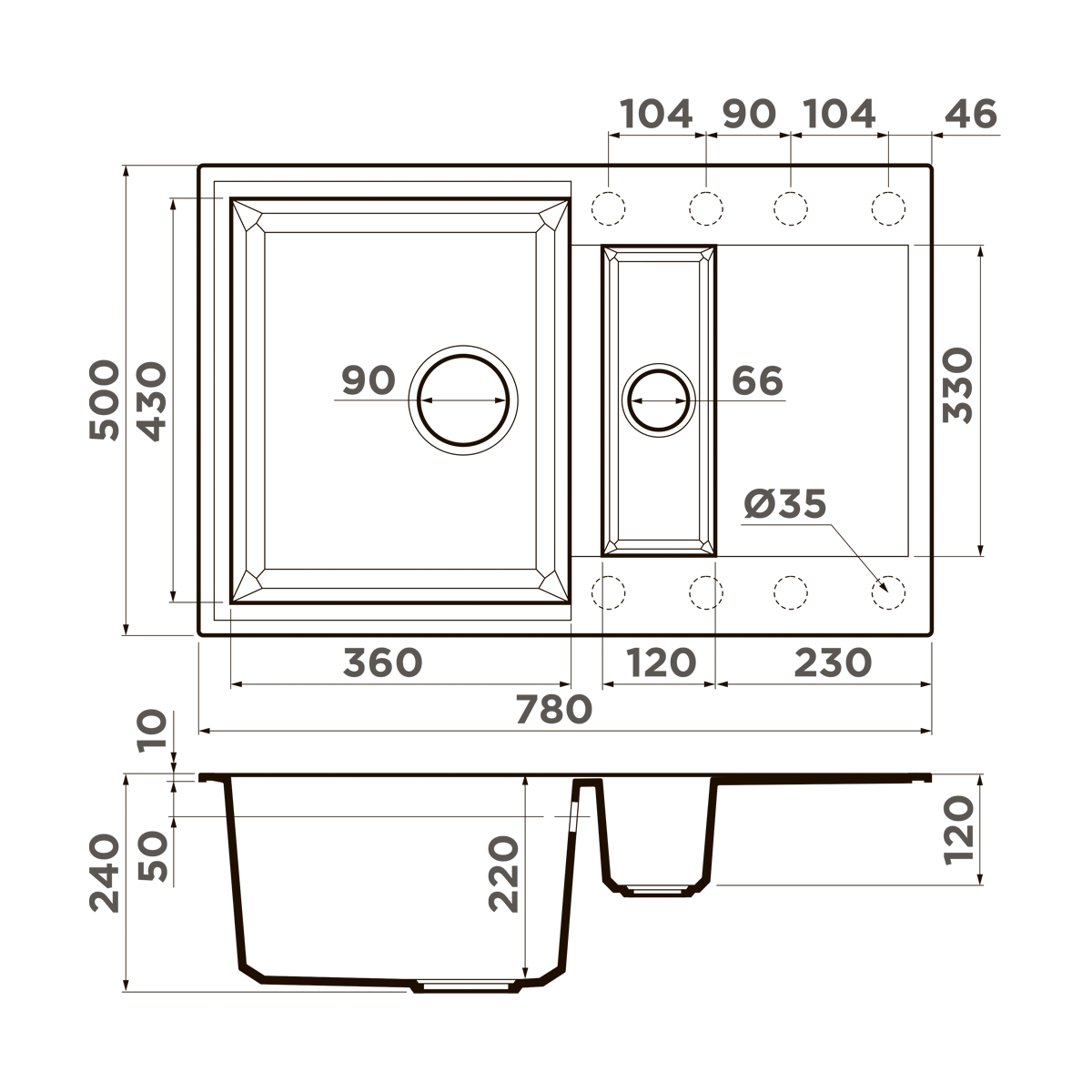 Материал выдерживает высокие температуры до 280°С (но не стоит ставить на поверхность мойки горячие сковородки и кастрюли, т.к их температура может достигать 500°С).