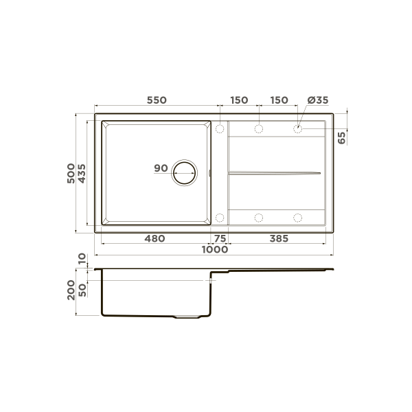 - Мойка создана из материала «Tetogranit Metal». В его составе: акриловая смола и натуральный гранит с добавлением металлических частиц, которые придают блеск и мерцание поверхности мойки. «Tetogranit Metal» отличается максимальной устойчивостью к температурным перепадам, ударам, царапинам и пятнам.