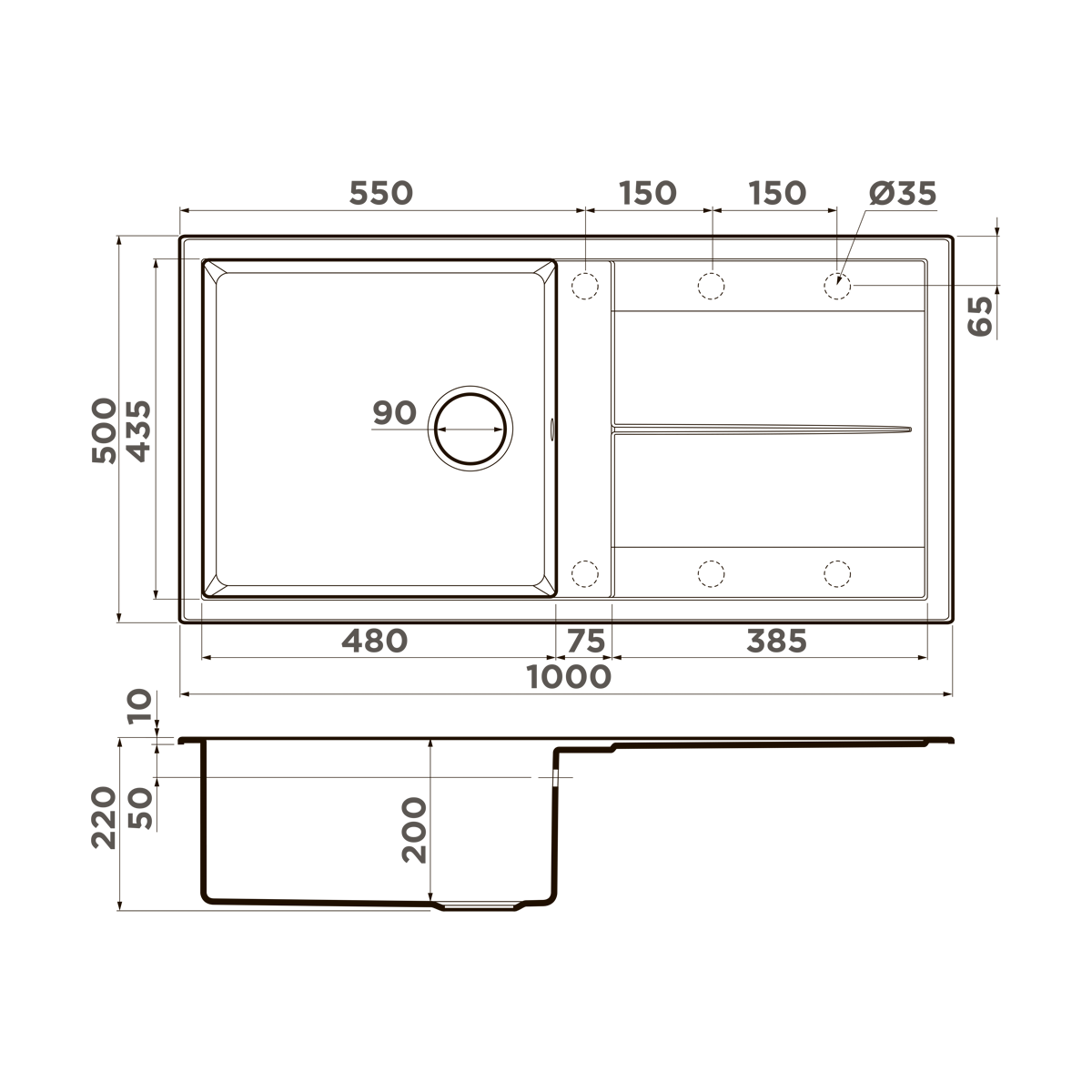 Материал выдерживает высокие температуры до 280°С (но не стоит ставить на поверхность мойки горячие сковородки и кастрюли, т.к их температура может достигать 500°С)