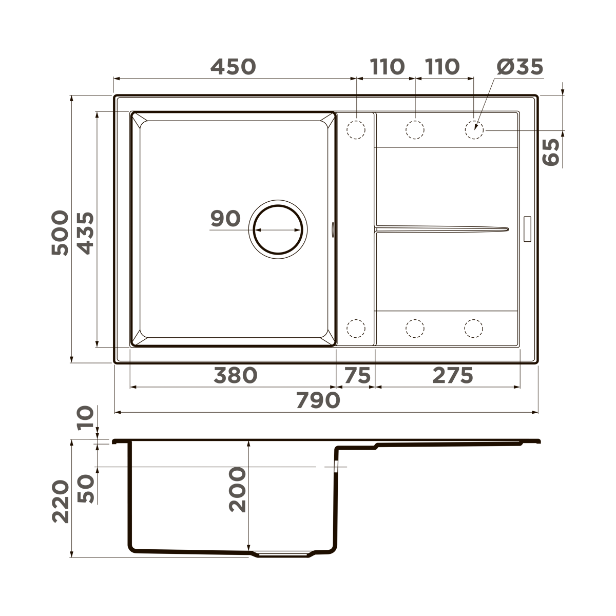 За счет окрашивания каждой частицы гранитного материала при помощи специальной технологии, первоначальный цвет мойки гарантировано сохраняется в течение всего срока службы