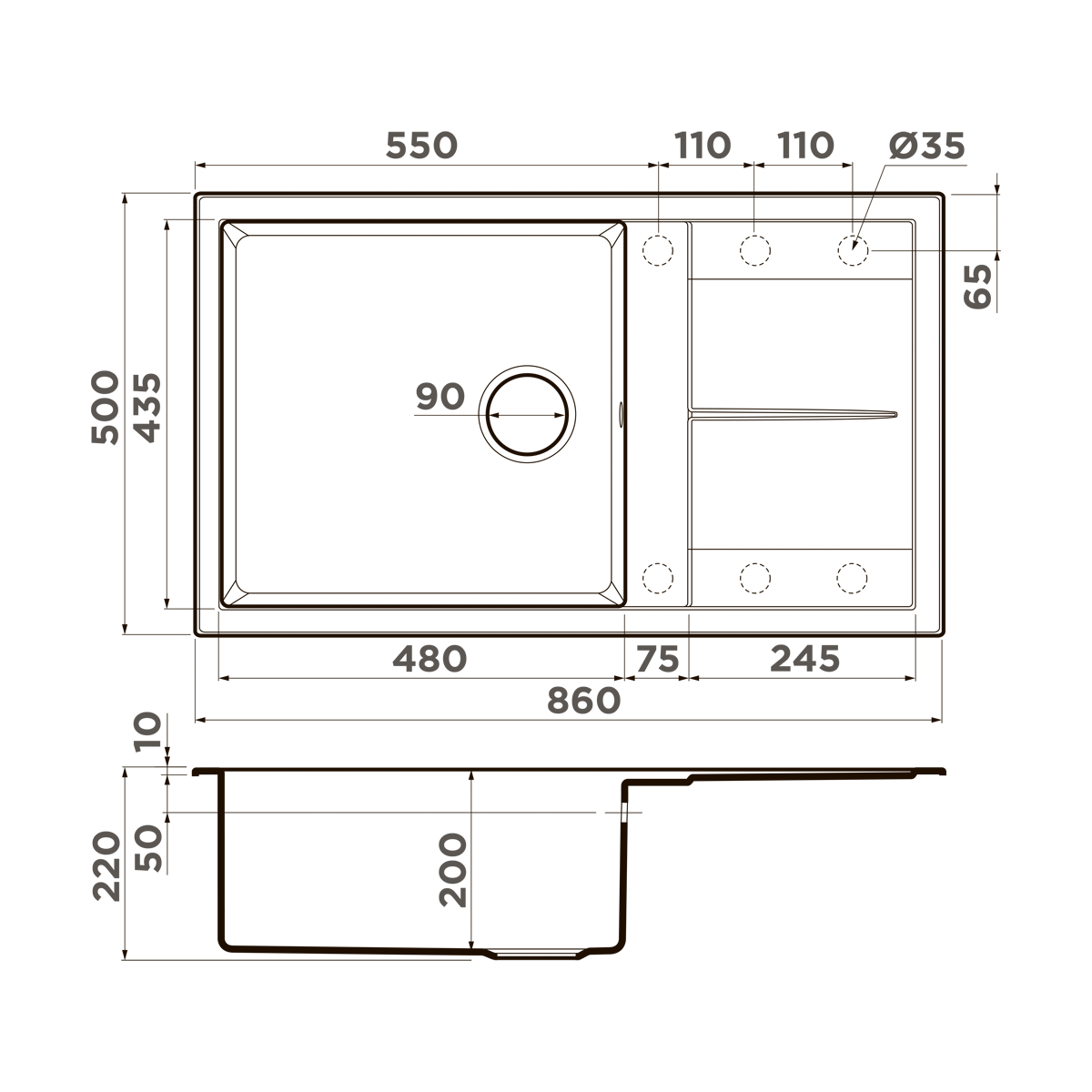 Материал выдерживает высокие температуры до 280°С (но не стоит ставить на поверхность мойки горячие сковородки и кастрюли, т.к их температура может достигать 500°С).