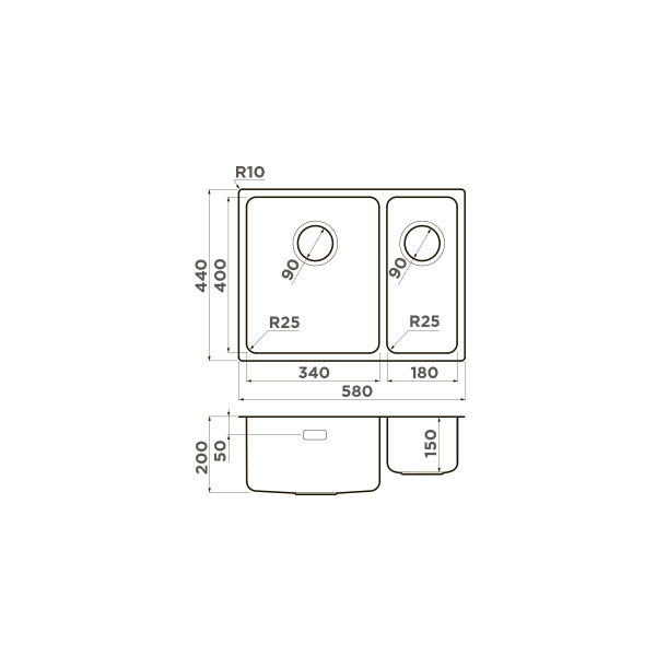 - Автоматический донный клапан приобретается отдельно.