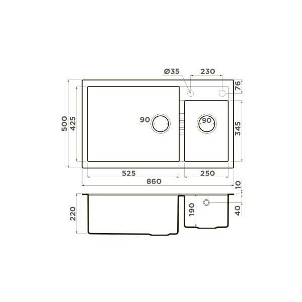 Мойка для кухни врезная Omoikiri Tedori 86-2-LB-BE 860х500 эверест (4993933)
