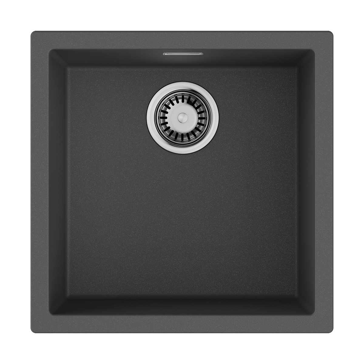 Мойка черного цвета создана из материала «Tetogranit Metal». В его составе: акриловая смола и натуральный гранит с добавлением металлических частиц, которые придают блеск и мерцание поверхности мойки. «Tetogranit Metal» отличается максимальной устойчивостью к температурным перепадам и ударам