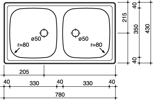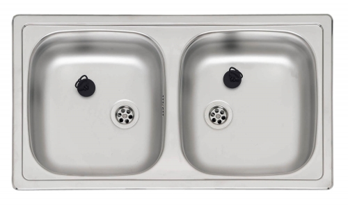 Reginox Beta 20 Lux SPOSP врезная мойка из нержавеющей стали с двумя чашами. Поверхность полированная. Подходит для шкафа шириной 800 мм. Сливное отверстие ? 1,5""(OSP), перелив в чаше."